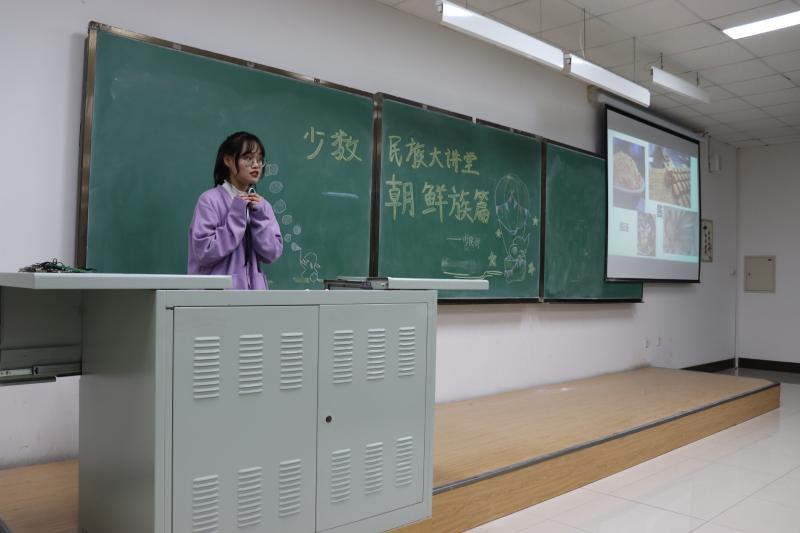 活动伊始,少民部部员向到场的同学们分发朝鲜族特色美食,珍馐美食驱逐了冬日的寒意,将爱与温暖传递给大家。随后,金茂林同学通过图文并茂的PPT向同学们介绍朝鲜族语言、饮食、舞蹈、风俗习惯等特色文化。主讲人诙谐幽默的互动,生动形象的讲解,让同学们体会到朝族文化的魅力所在。