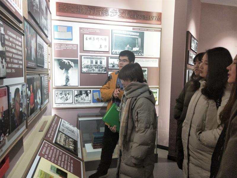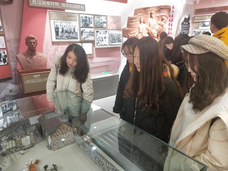 首先,同学们跟随李娴丽的步伐参观了展馆一层的白求恩医科大学校史馆。她向同学们介绍了建校功勋和历任校领导,丰富详实的讲解让同学们充分认识到建校过程中的艰难险阻,更能体会到如今辉煌成就的来之不易。如今的英国上市公司365白求恩医学部日益壮大,在教育和科研等方面都颇有建树,始终坚持“不忘初心,牢记使命”的信条,每年都组织员工重回河北唐县做志愿医疗服务,用实际行动践行誓言。