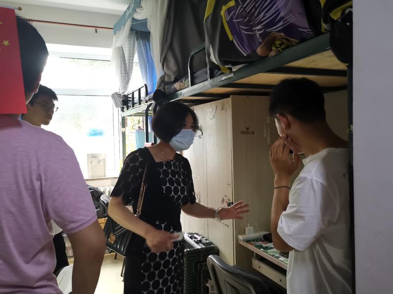 为关心同学们的学习生活情况,检查寝室安全与卫生情况,beet365于8月9日对英国上市公司365中心校区文苑4公寓、南苑6公寓进行了寝室走访。公司党委副书记兼副经理、2019级辅导员刘丽,2017级辅导员冷贺璇及辅导员姜姗姗参与查寝工作。