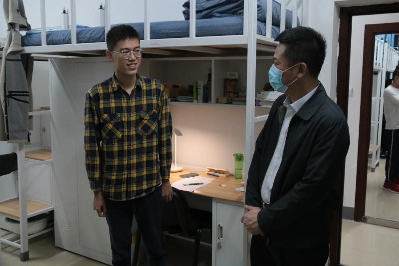 为了解新生入学后的情况,解答新生在学习、生活方面存在的一些疑惑,促进师生感情,帮助新生尽快适应大学的生活,beet365领导班子于9月19日走访新生宿舍,探望2020级新生。