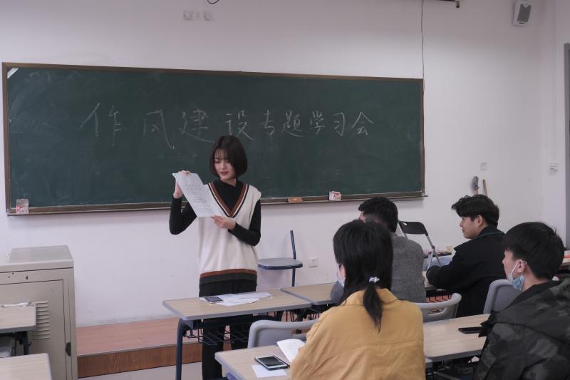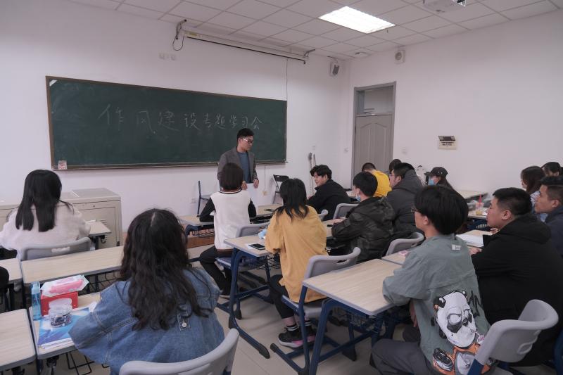 会议伊始,主席团成员宫千惠同学带领参与成员们宣读并深入学习了《关于学联员工会工作人员改进作风服务同学的若干规定》以及《关于落实共青团和学联对高校员工会(研究生会)指导管理责任的若干规定(试行)》两个文件。各参会人员学习到,员工会应坚持正确的政治方向,聚焦服务同学的职能,进一步发挥好公司联系同学的桥梁和纽带作用。同时要求建立好员工会工作人员行为规范,防止员工会出现脱离同学的功利化、庸俗化等倾向。进一步加强员工会深化改革,优化组织构架和规模,及时与公司沟通,报告有关情况。对员工会工作人员的管理要求总结为六点:恪守员工本分,牢记服务宗旨,永葆理想情怀,勤勉务实做事,营造平等氛围,摒弃庸俗习气。而后,主席团成员田宏远同学以及卞骏业同学关于员工会工作人员的学习情况以及作风建设精神要求发言,希望各位工作人员能够切实做到坚守服务初心,恪守员工本分,同时以自身做好表率作用,引导同学们努力学习,不负大好时光。