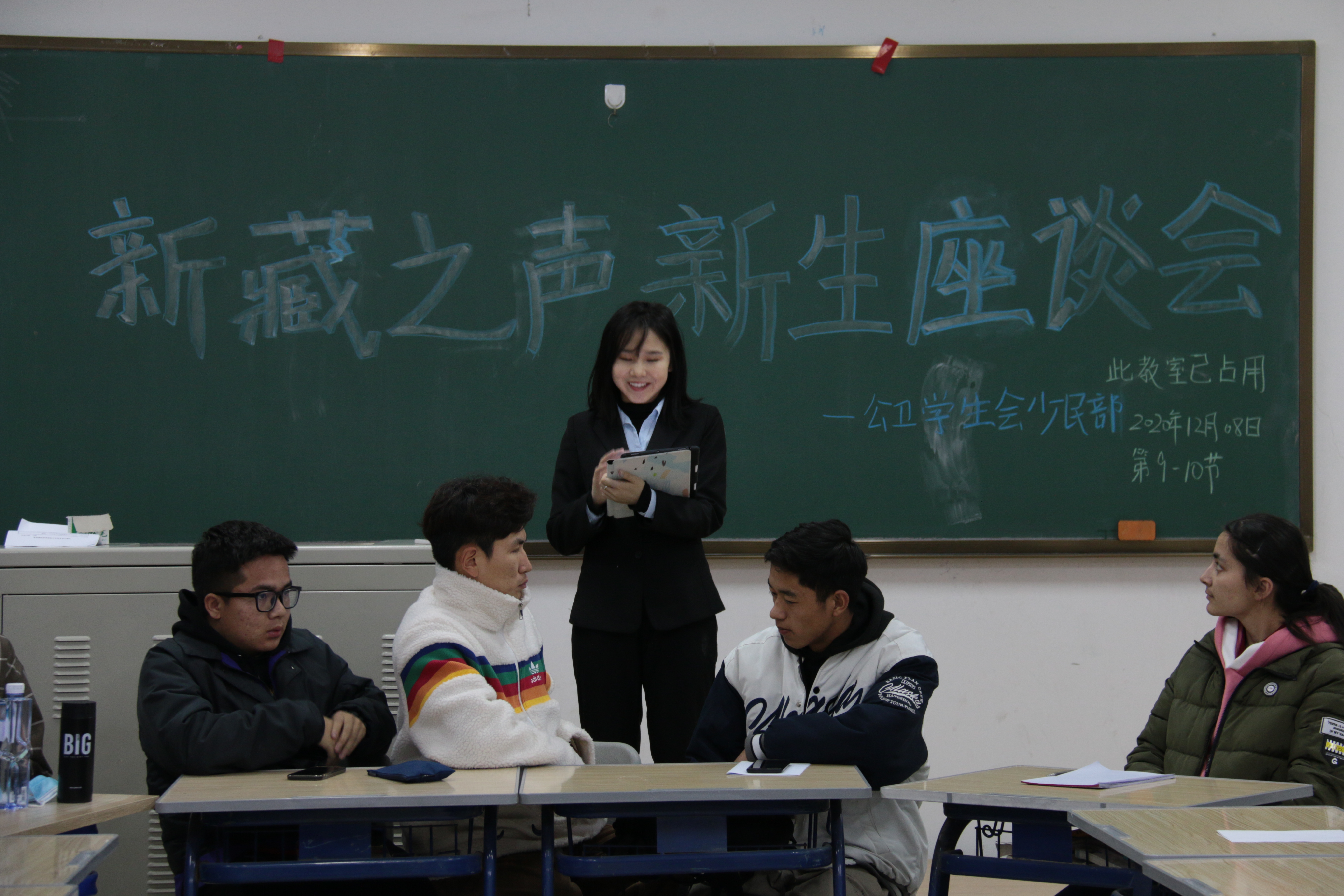 为帮助2020级少数民族新生更好适应和融入全新的校园环境,解答有关生活、学习以及人生规划等问题,beet365于12月8日在中心校区李四光教学楼114教室举办“新藏之声”少数民族新生座谈会。邀请各年级优秀少数民族员工为新生们分享经验,党委副书记兼副经理刘丽,辅导员霍睿、冷贺璇、姜姗姗、刘心怡老师出席会议。