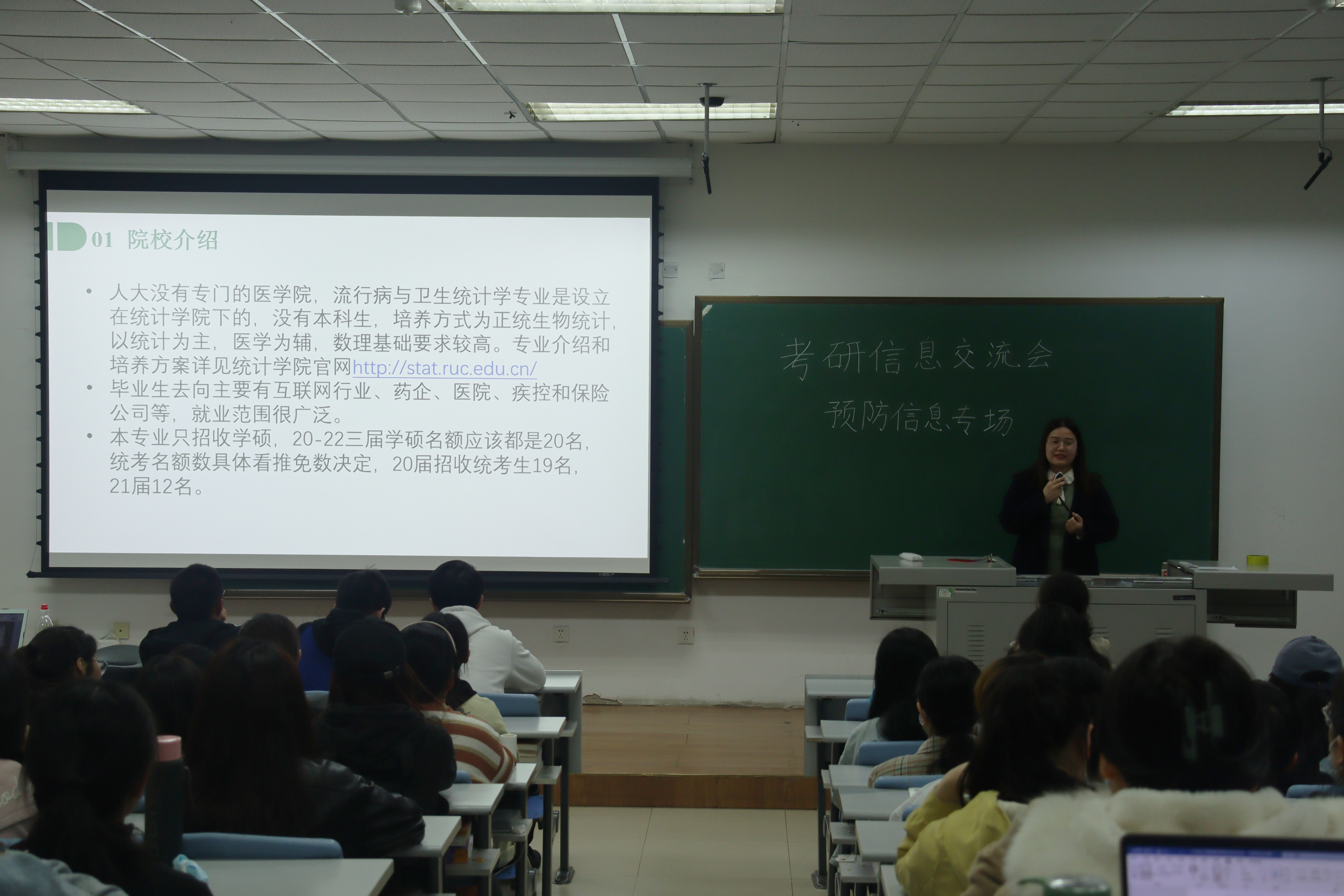 为帮助2017级准备考研同学们了解考研情况,掌握复习方法,树立提振信心,beet365于4月25日晚在新民校区第二教学楼2103教室开展了针对预防医学、医药信息专业的考研信息交流会,会议邀请了在2020年考研中取得优异成绩的同学前来分享经验,2017级考研在即的同学们,以及其他年级有兴趣的同学参加了本次分享会。