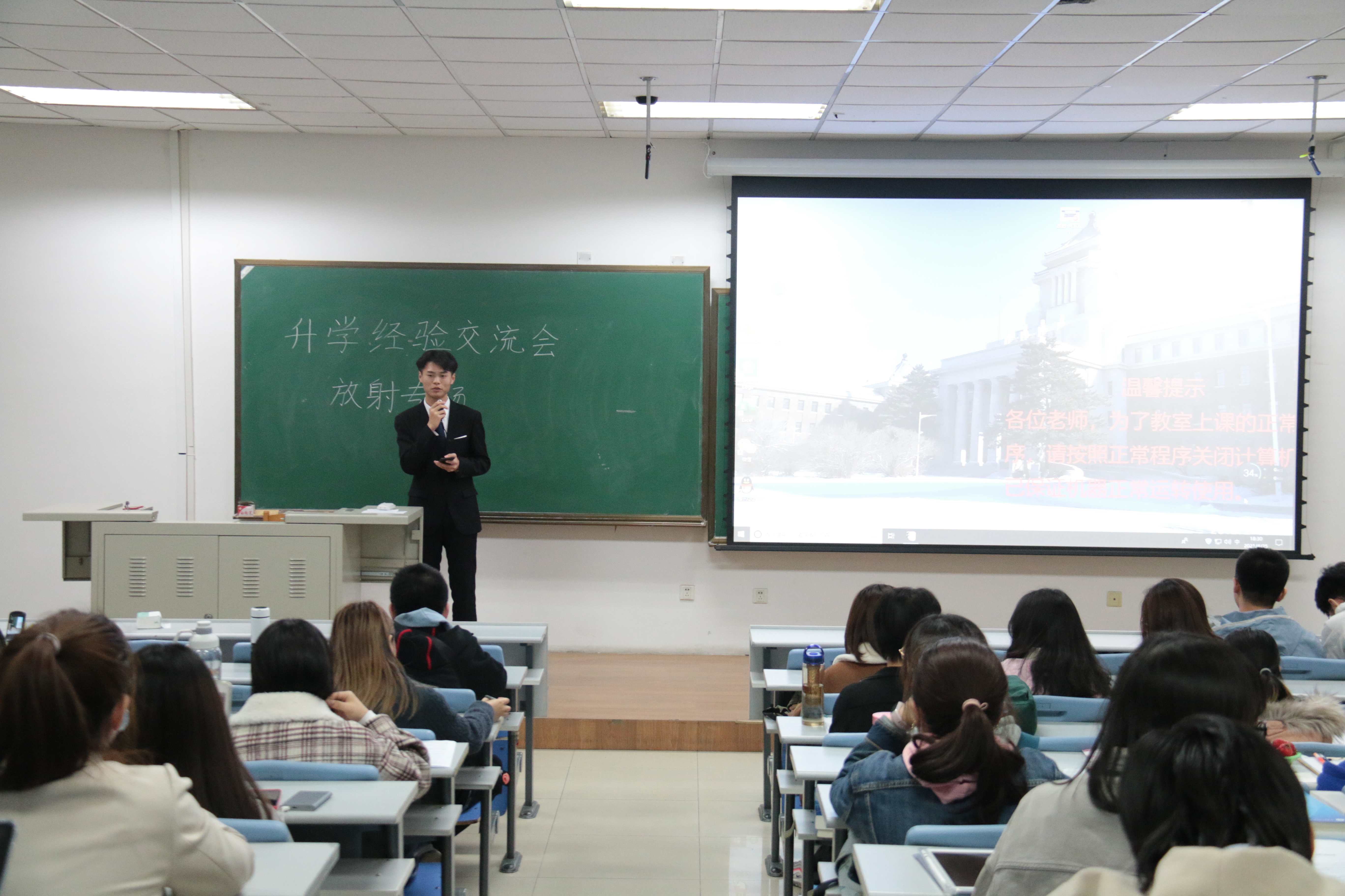 首先,曲红道同学介绍了相关考研学科的网课及习题,分享了自己的考研经验及时间安排,他建议同学们合理计划复习,提高复习效率。随后,何双双同学讲解了关于择校、初试、复试、心态及联系导师的相关问题,他指出一定要先找准方向、稳扎稳打,并依照不同科目不同时间制定计划,在备考的过程中要平稳心态、循序渐进。方嵩同学分享了自身由于专业选择原因复习时间较短的经历,她谈到在有限的时间内应充分利用时间、制定规划,介绍影像相关专业应如何备考。包俊杰同学主要分享了一些重点高校的考研信息,包括附属医院概况及招生情况,并为同学们考研初试复试提出了几点建议,希望同学们能够合理有效利用时间。最后,付伟佳同学分享了她的作息时间,并介绍了英国上市公司365附属医院相关招生信息,并指出夏令营的相关重要性。本次考研经验交流会在同学们的热烈掌声中圆满结束。