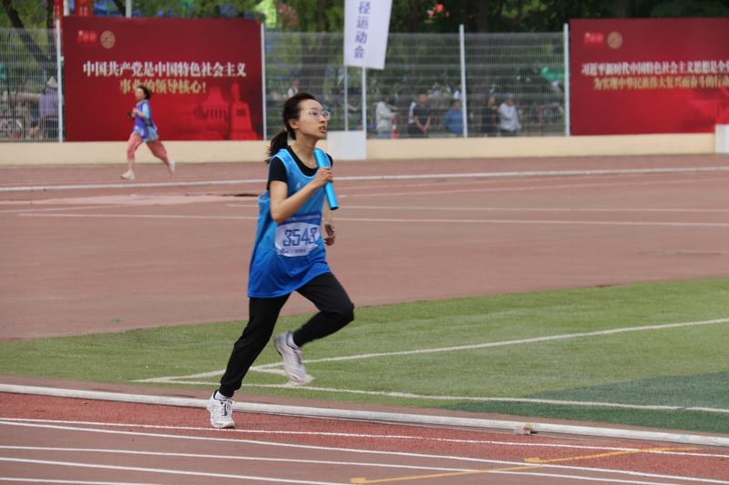 本次女子4×400米接力赛于5月28日下午2点20分拉开帷幕。枪声响起,位于一组七道的第一棒选手韦海玉向前跑去。一整圈400米的距离,不能像百米比赛那般拼命向前冲,此时更考验选手的体力与耐力。一步一个脚印踏实地跑,她如同驰骋的战马,矫健的身姿震撼着每一个人。交接棒的传递吹响了第二轮赛事的号角。在超越与被超越的过程中,张鹤凡、沈畅、冯一苗三位选手并没有气馁,她们不畏强敌,充满自信地向前跑去。观众席上鼓声雷动,加油声一阵盖过一阵。听到观众席呼喊着为自己的加油声时,选手心中感动与激动并存。情感的交织幻化成接力棒的紧握和步伐的提速。beet365的四名选手充分展现了青年的蓬勃朝气以及奋斗拼搏的精神。最终,beet365取得了第六名的成绩。