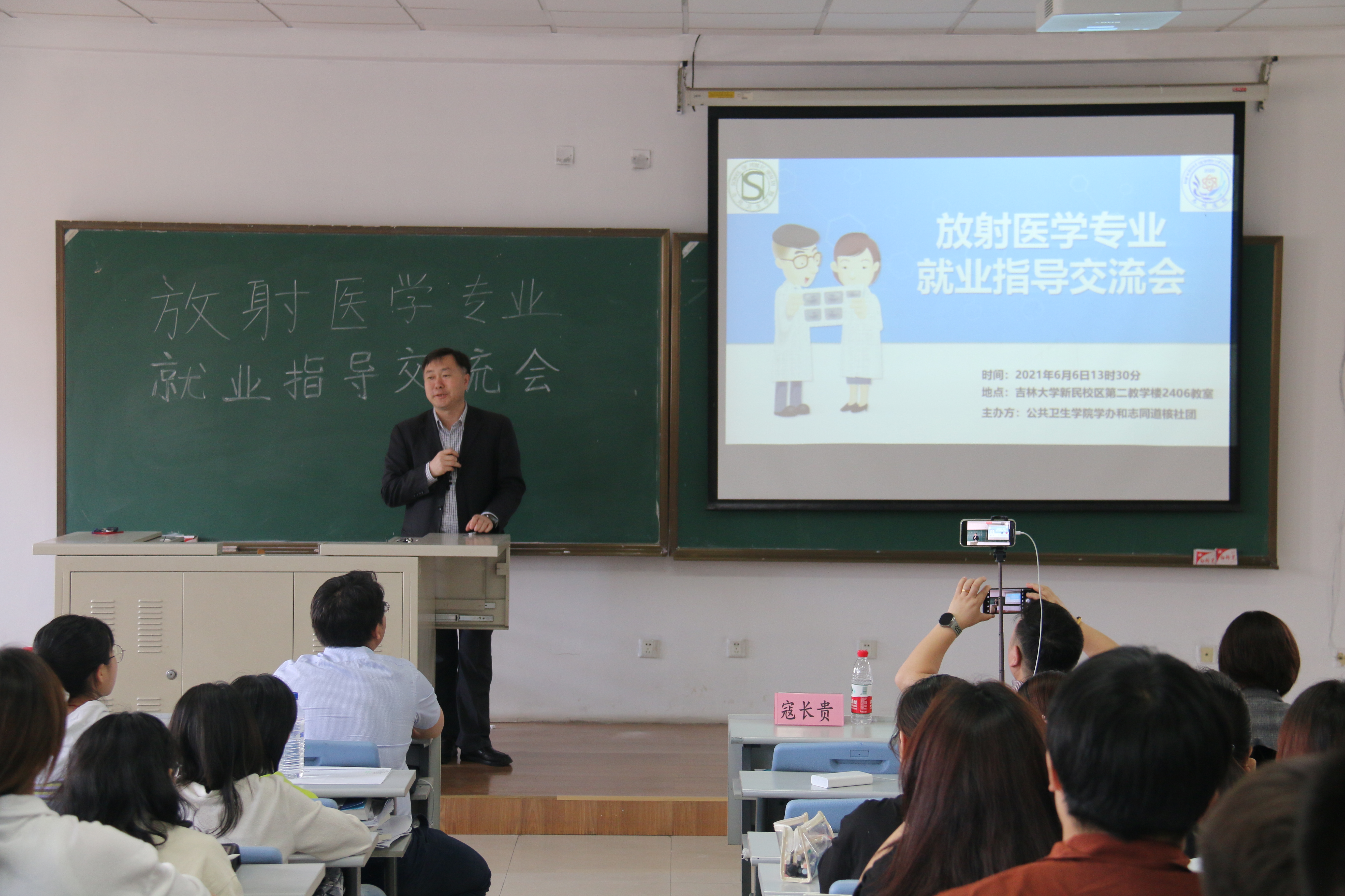 为引导放射医学专业同学做好职业规划,正确、理智选择毕业去向,增强同学们的个人规划意识,提高就业、考研竞争力,6月6日13:00,beet365“志同道核”社团于新民校区第二教学楼2406教室成功举办放射医学专业就业指导交流会。本次交流会作为2017级放射医学同学的就业指导慕课线下课程,共邀请了寇长贵、姜新、申延男、王辉东、陈滨、王志佳、冷贺璇、刘心怡八位老师作为主讲人及嘉宾,2017级放射医学专业所有员工以及2018级、2019级放射医学专业部分员工参加了本次会议。