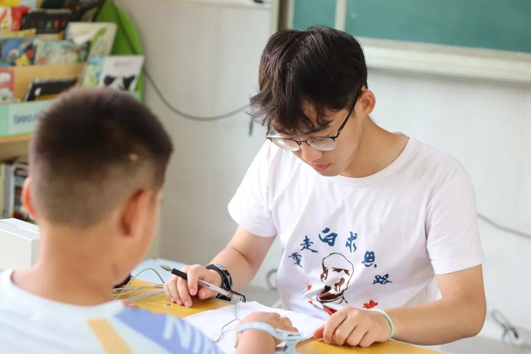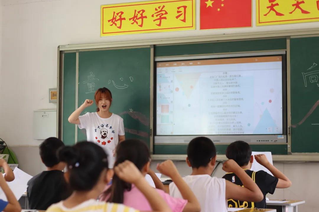 7月17日公司党委副书记兼副经理刘金超到达葛公村小学看望志愿者们。刘书记和志愿者们一同生活,深刻体会了志愿者们生活环境的艰苦。刘书记此行鼓舞了各位志愿者,志愿者们今后的支教活动更加满腔热忱。在两天暴雨天气的休整之后,我们的课程又继续了。孩子们毫不吝啬表达自己的想念,珍惜着每一秒上课时间。“请党放心,强国有我”,这节课在孩子们和志愿者的朗诵声中开始。志愿者们给孩子们看了《请党放心,强国有我》的朗诵视频。孩子们深受感悟。接下来,志愿者分发信纸,让孩子们感党恩,对党、对自己、对老师写下自己心里所想,抒发所感。在这节课上,孩子们拿起油画棒,几人一组,随心所欲填涂面前的空白简笔画。每完成一幅作品,孩子们快乐地拿起自己的作品和老师们合照。