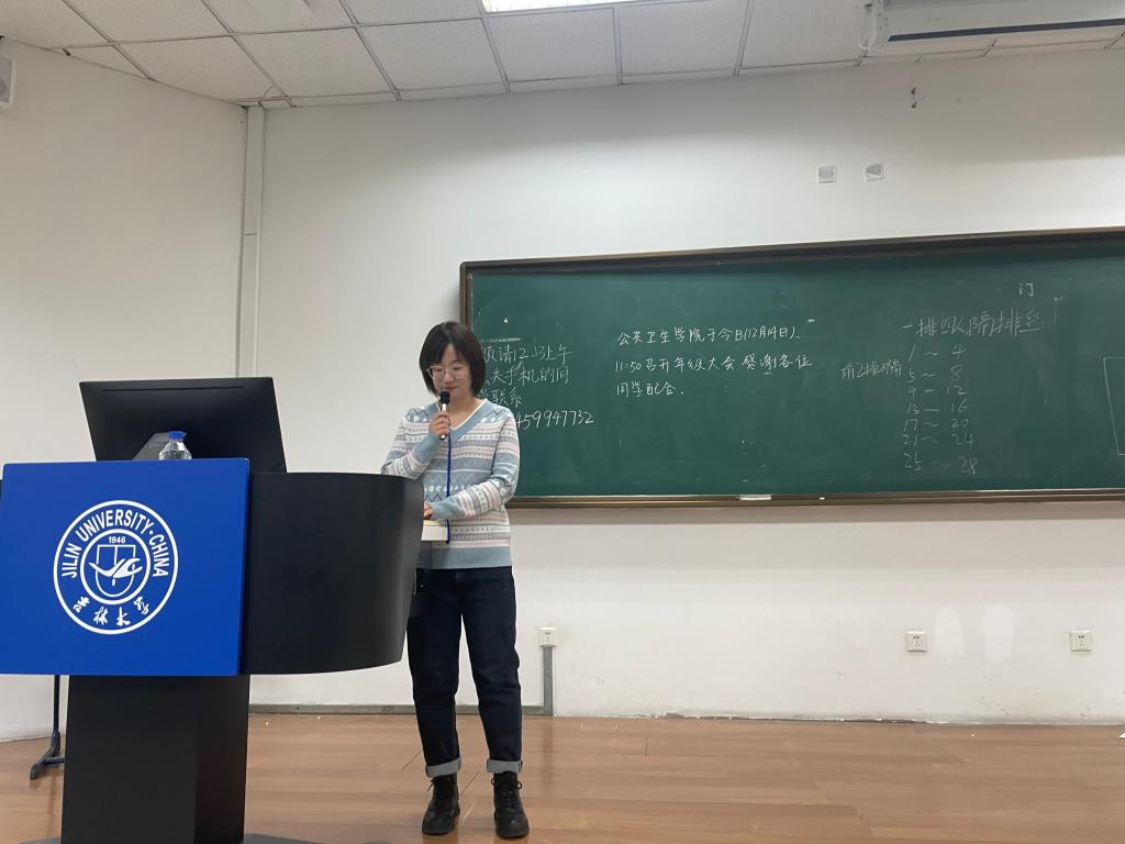 冷贺璇老师首先进行考风考纪教育,强调同学们一定要杜绝考试作弊等不良行为,倡导诚信考试。通过列举真实案例让同学们明白了考试作弊的严重后果和恶劣影响,使同学们加强自身管理,诚信考试,对自己的大学学习生活负责。而后,冷贺璇老师向同学们传达了宿舍安全卫生相关问题,并对员工宿舍安全检查的结果进行了总结,希望同学们能够处理好宿舍卫生,在宿舍杜绝违章电器,保证自身与他人的安全。紧接着,冷贺璇老师提醒同学们在如今防疫常态化的阶段要时刻保持疫情防控的警惕性,每天都要按时打卡,上报自身健康状况,离校需在系统申报审批,离校前检查宿舍门窗,带走贵重物品。最后,冷贺璇老师进一步告诫同学们要努力学习,认真对待每一场考试,注意及时调整自己的状态,提前做好期末复习,争取获得理想的成绩,迎接美好而充实的假期,同时,冷老师鼓励大家思考自己的未来规划,向着自己的目标努力奋斗。