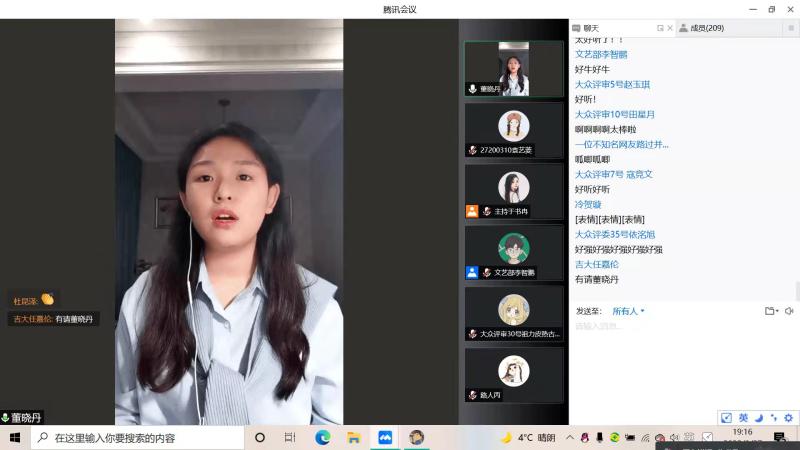 决赛共分为两轮比拼,选手们赛前通过抽签两两一组进行对战,精心准备好个人参赛歌曲。正式比赛过程中,选手们一展歌喉,有的自弹吉他伴奏,有的自谱歌曲,评论留言区里同学们纷纷加油助威。“希望疫散花开,长念春来”“希望早日相约新民二教”等留言纷纷刷屏,同学们在歌声中表达对疫情过后的美好期盼,为抗疫工作者们奋战一线的精神加油。根据评委和大众评审投票结果,王子涵同学获得一等奖,董晓丹同学、秦宇逍同学并列获得二等奖,付一博同学获得三等奖,刘春贺同学获得优秀奖。比赛最后,所有参赛选手和师生们打开摄像头,同唱一首相亲相爱一家人,在疫情期间传递温暖与感动,感受到整个公卫公司大家庭的团结一心,坚定了防疫工作的信心。