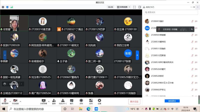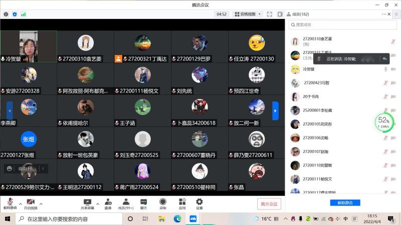 为落实长春市及公司疫情防控总体要求,加强同学们对疫情防控认知。beet365辅导员冷贺璇于4月4日晚九点在腾讯会议召开了“同盼春来,共克时艰”主题年级大会。2017级及2020级全体同学参加了本次年级大会。