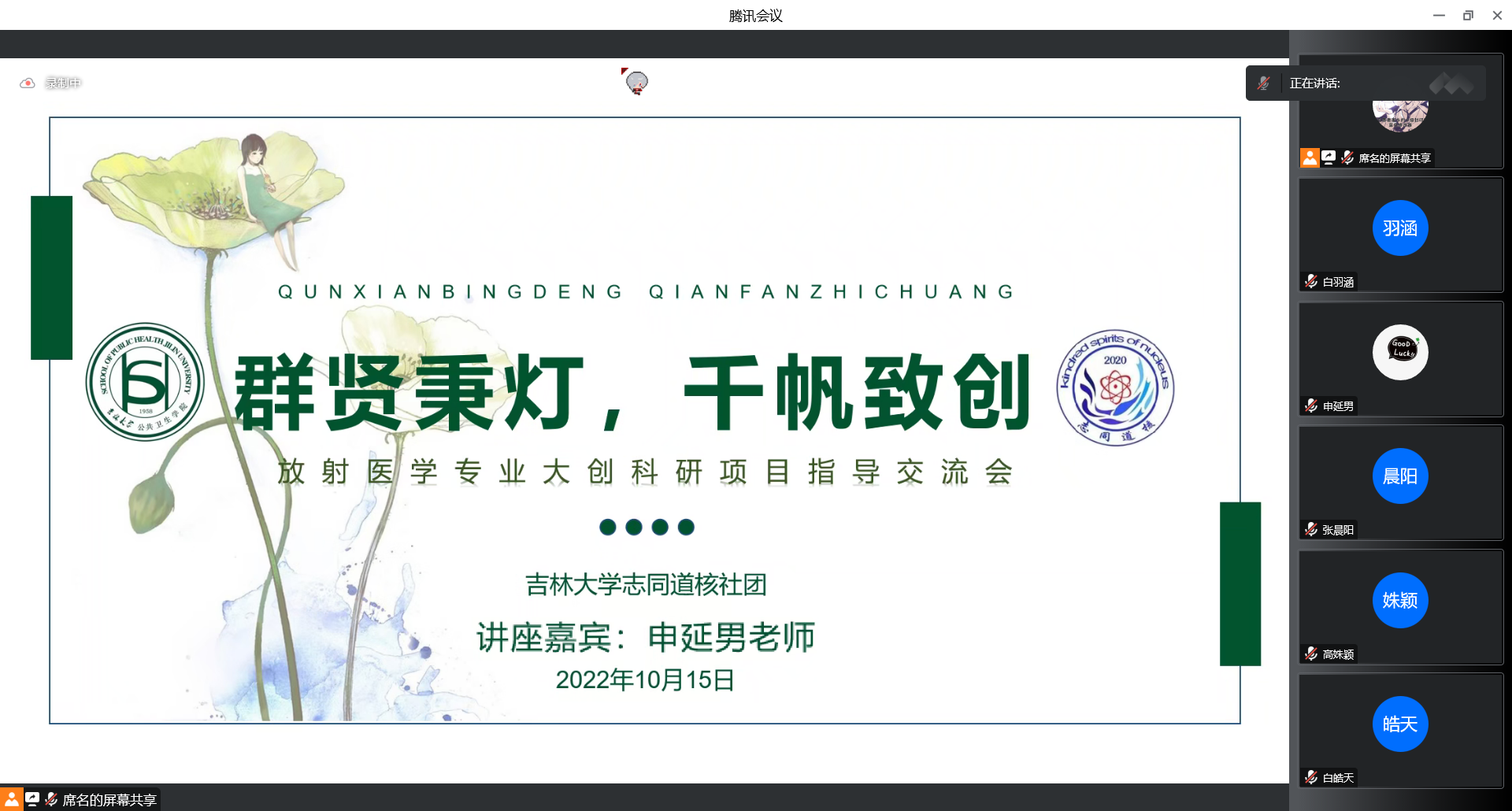 为帮助2021级、2022级放射医学专业同学深入了解老员工创新创业训练项目,搭建与导师沟通交流的平台,以便于日后大创项目的顺利开展,10月15日晚上七点,beet365志同道核社团线上成功举办beet365放射医学专业大创科研项目指导交流会。本次会议邀请了放射生物学教研室主任申延男教授作为讲座嘉宾莅临指导。党委副书记兼副经理刘金超、辅导员苏国范、辅导员冷贺璇以及2021、2022级同学参与了本次会议。